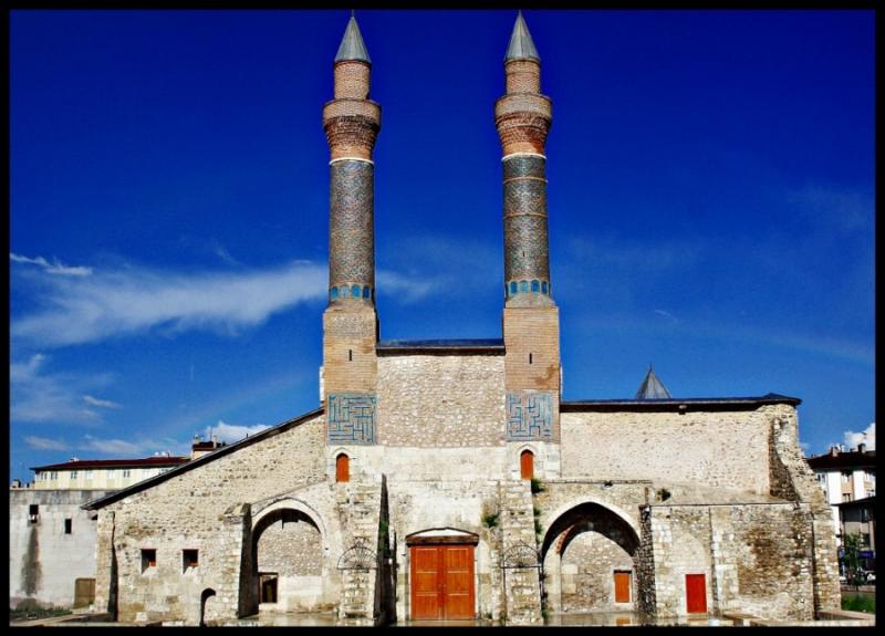 Anadolu'da yapılmış anıt niteliğindeki medreselerden biri olan, Çifte Minareli Medrese tarihte Dârü'l-hadis adıyla da anılmıştır. İki katlı, dört eyvanlı bir yapısı olan Medrese’nin bitki ve geometri motifleriyle süslü taş kapısı Selçuklu mimarisini yansıtmaktadır. Medrese’nin bu bölümleri halen sağlam durumda olup ziyarete açık konumdadır.