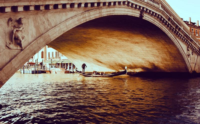 Piazza San Marco Venedik gezilecek yerler listesinde daha ünlü olabilir, ancak Ponte di Rialto (Rialto Köprüsü) Venedik'in gerçek bir kalbidir. Mevcut yapı sadece üç yıl içinde, 1588-1591 yılları arasında, 12nci Yüzyıldan bu yana çeşitli zamanlarda Grand Canal'a yayılmış tekne köprüsü ve üç ahşap köprünün daimi yerine geçmiştir. Accademia Köprüsü'nün 1854 yılında inşa edilmesine kadar Büyük Kanal'ı geçmenin tek yolu yaya şeklinde hareket etmek gerekiyordu.